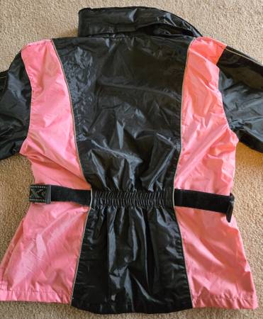 This is used but in excellent condition. From top to bottom features include: hidden hoodie, reflective piping throughout, mesh inner lining of jacket, sleeves and pants are cuffed. Adjustable waist strap with elastic back. Pants have an elastic waist, sit pad, large thigh pocket, lower leg heat protection, removable boot straps and zippered ankles.