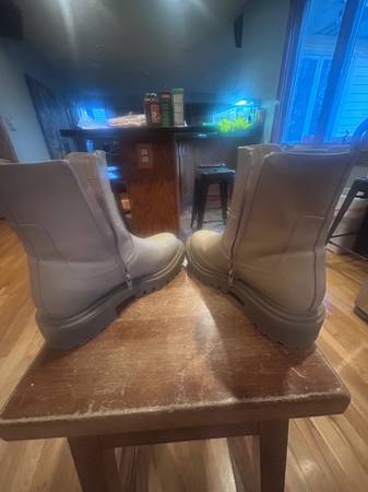 These boots pair beautifully with cozy fall or winter outfits and add the perfect touch of height. They’ve been moderately worn, so they have minimal scuffs and light creasing, but still look great and have plenty of life left. Super comfy, stylish, and ready for their next home!