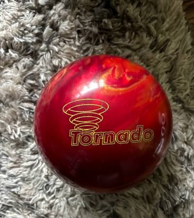 Used just a few times: 12 lb retired ball/color Ebonite Toranado Red, Orange, Gold $85 Ebonite bowling ball bag with shoulder strap and handle carry, 2 side zip pockets with slash pockets on outside...
